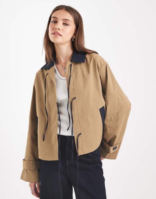 Gabardina corta beis con lazadas en la parte delantera de ONLY