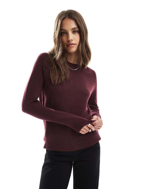 Jersey burdeos con cuello redondo de punto de ONLY