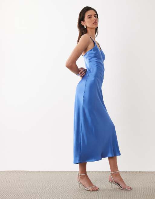 ONLY - Vestido semilargo azul con cuello de pico