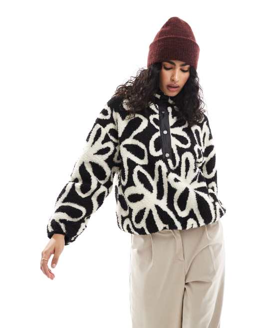 Polar blanco abotonado con estampado floral de borreguito de ONLY