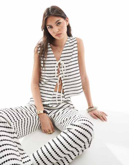 Top a rayas negras con lazada delantera de punto de ONLY (parte de un conjunto)