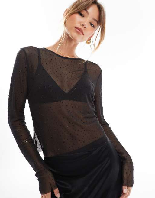 Top negro de malla con pedrería de ONLY