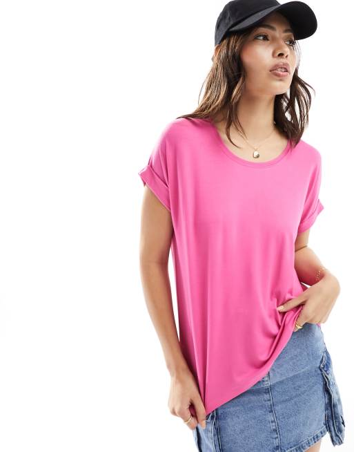 Top rosa luminoso de manga corta con cuello redondo de ONLY