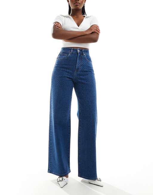 Vaqueros azul medio de pernera ancha con pedrería Hope de ONLY