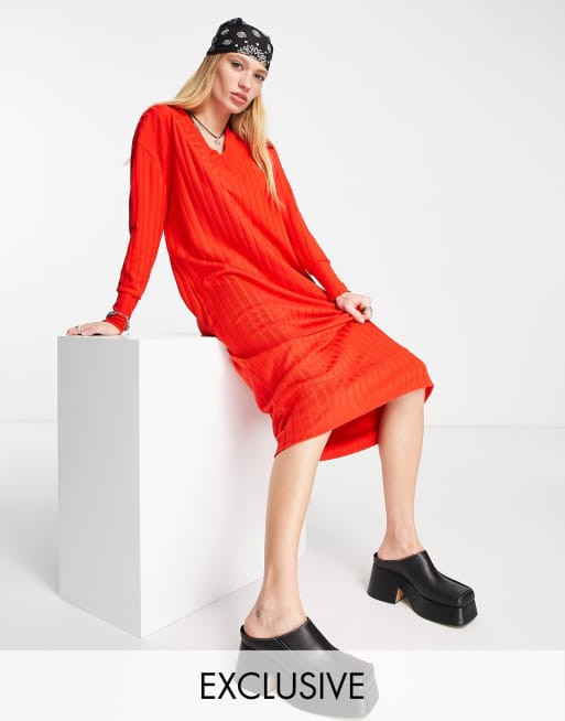 Vestido midi rojo luminoso de canalé exclusivo de Only