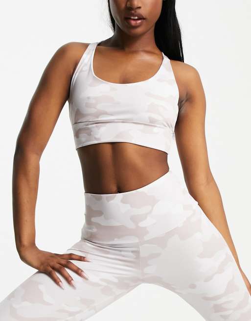 Sujetador beis deportivo con estampado de camuflaje de sujeción media Sacred de ONZIE