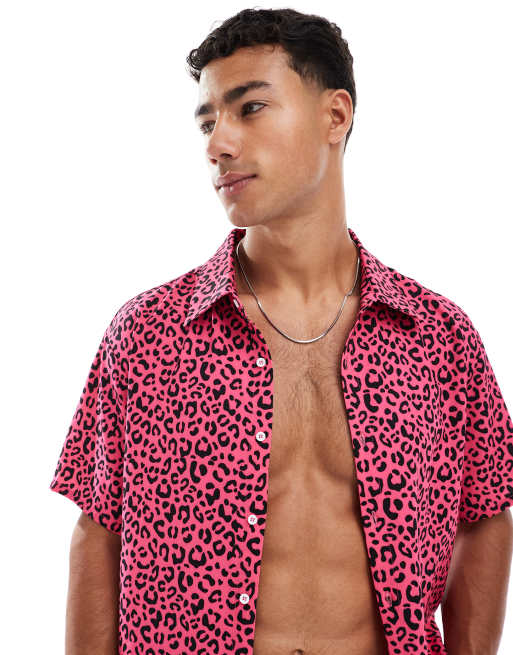 Camisa rosa de manga corta para hombre con estampado de leopardo de OOSC