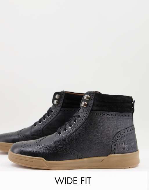 Botines negros con cordones estilo zapatos Oxford de cuero de Original Penguin Wide Fit