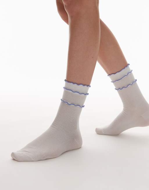 Calcetines tobilleros blancos con ribetes escalonados azules de & Other Stories