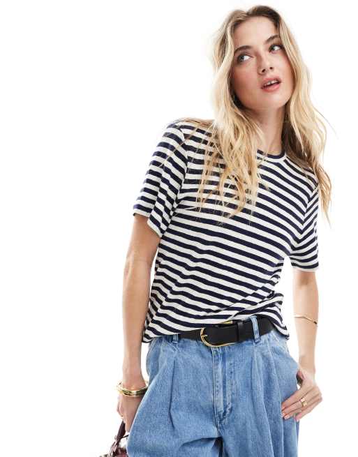 Camiseta blanca y negra a rayas holgada de manga corta de mezcla de lino de & Other Stories