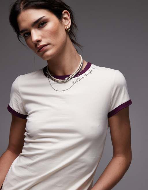 Camiseta blanco hueso entallada con ribetes en contraste y bordado "Ciao amore" de & Other Stories