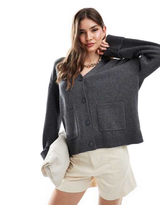 Cárdigan gris oscuro con mangas vueltas de mezcla de lana exclusivo de & Other Stories
