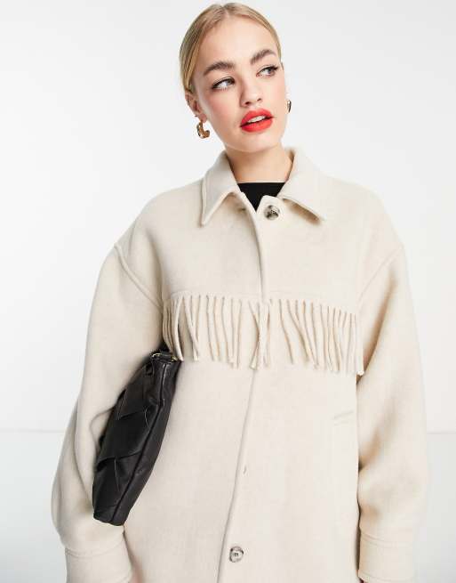 & Chaqueta de lana Other Stories con detalle de flecos en beige - BEIGE
