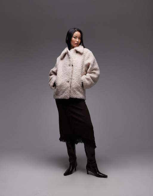 Chaqueta midi beis de piel sintética rica en lana de & Other Stories