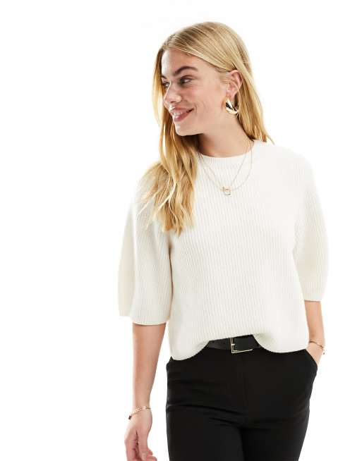 Jersey blanco suave de manga corta de punto de canalé de lana de merino de & Other Stories