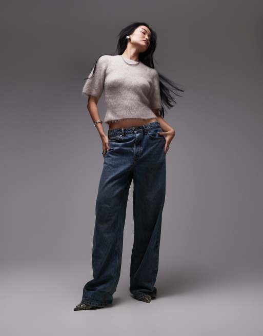 Jersey marrón topo jaspeado de manga corta de punto de mezcla de lana de mohair de & Other Stories