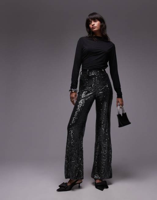 Pantalones de campana plateado oscuro con bajo de flecos y diseño integral de lentejuelas de & Other Stories