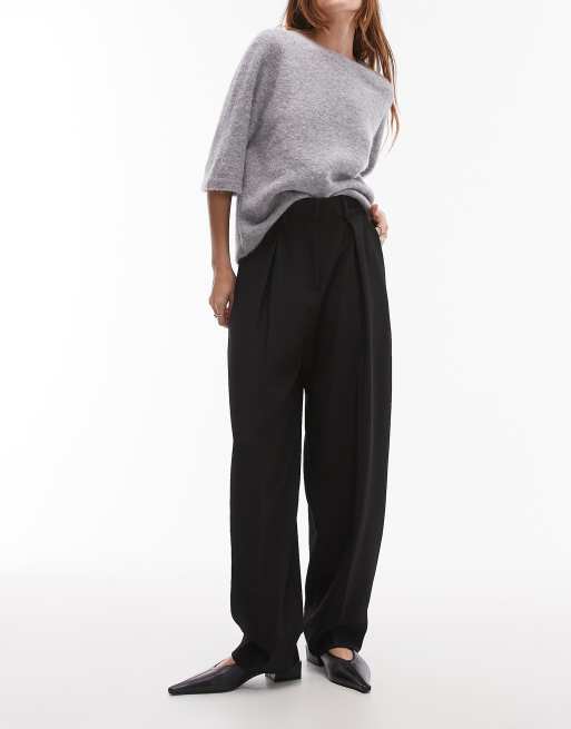 Pantalones de sastre negros de pernera tapered con detalle de pinzas delanteras de & Other Stories