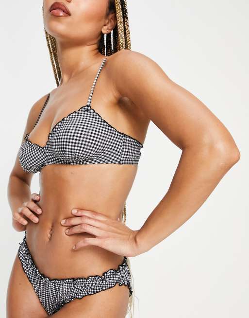 Sujetador a cuadros vichy blancos y negros con ribetes de volantes de & Other Stories