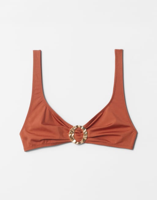 Top de bikini naranja tostado triangular con detalle de anilla Mix & Match de & Other Stories