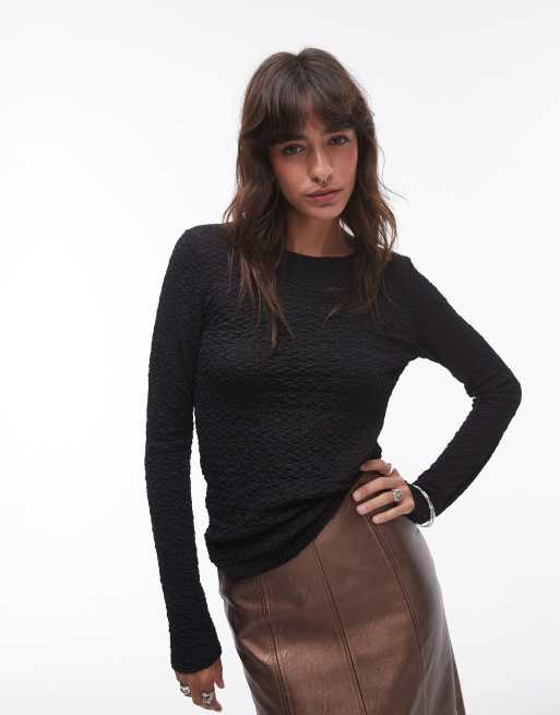 Top negro entallado de manga larga con diseño fruncido elástico de punto liso de & Other Stories