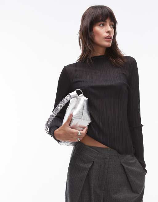 Top negro plisado de manga larga de malla de & Other Stories