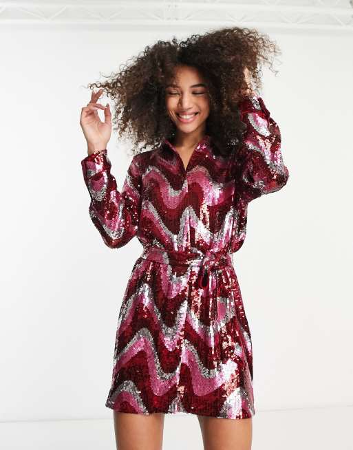 Vestido camisero corto rosa con diseño integral ondulado de lentejuelas de & Other Stories