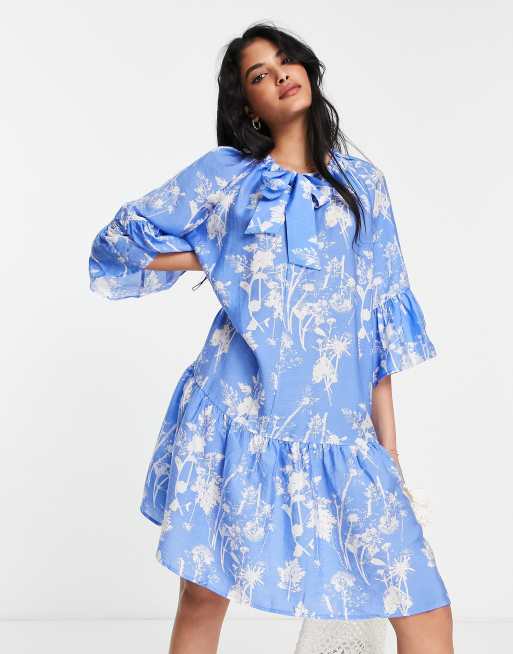 Vestido corto azul amplio y escalonado con diseño estampado de & Other Stories
