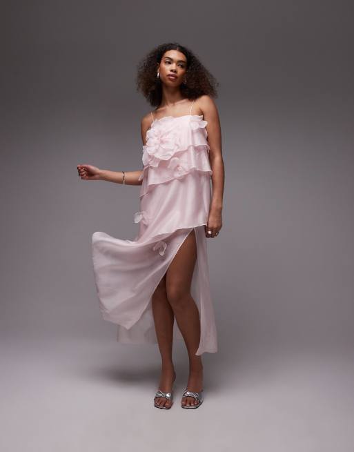 Vestido largo rosa traslúcido con diseño de capas y aplicación floral de chifón de & Other Stories