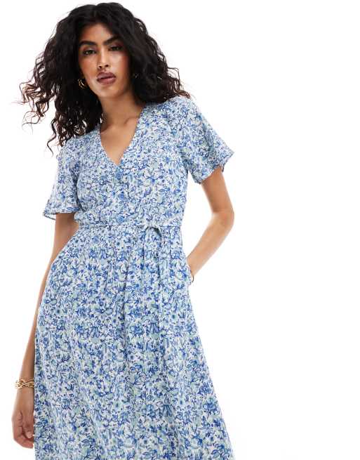Vestido midi azul con estampado floral y mangas fluidas de & Other Stories