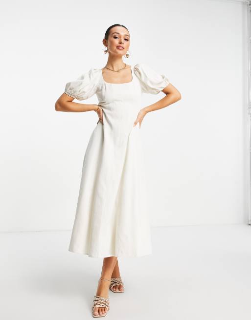 Vestido midi blanco de corte princesa con espalda abierta de & Other Stories