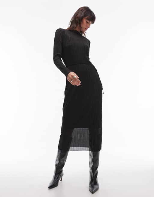 Vestido midi negro plisado de malla de & Other Stories