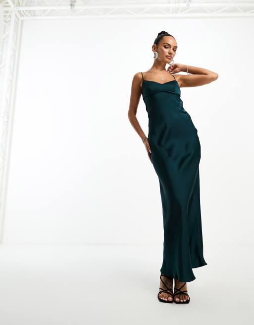 Vestido lencero largo verde oscuro de satén de Parallel Lines