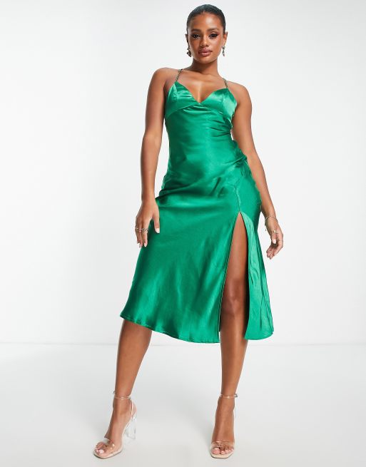 Vestido midi verde esmeralda con abertura en la espalda de satén de Parallel Lines