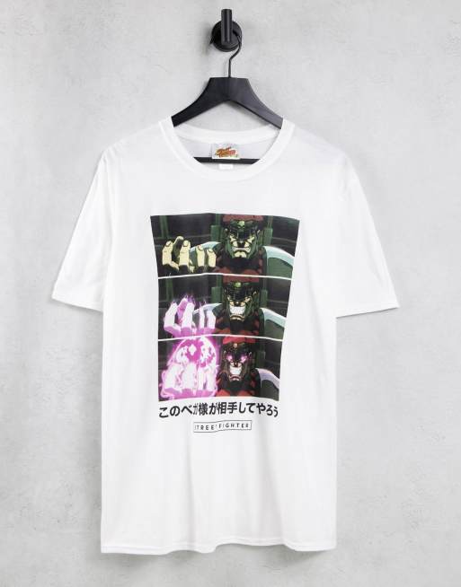 Camiseta blanca extragrande con estampado de M Bison de Street Fighter