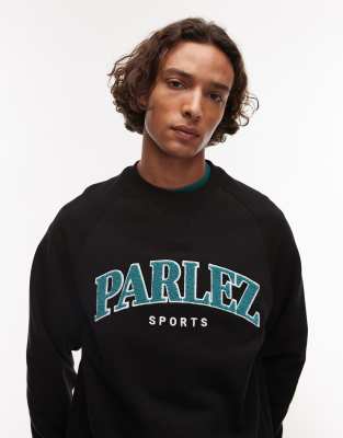 Sudadera negra con cuello redondo y logo de estilo universitario de tejido rizado de Parlez