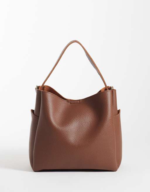 Bolso bombonera marrón de mano con correa bandolera de PASQ