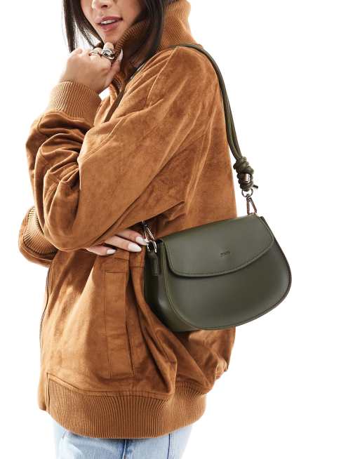 Bolso de hombro verde oliva estilo saddle con detalle anudado de PASQ