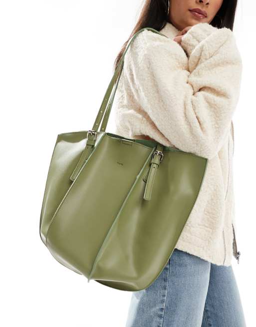 Bolso tote verde oliva con pliegues de PASQ