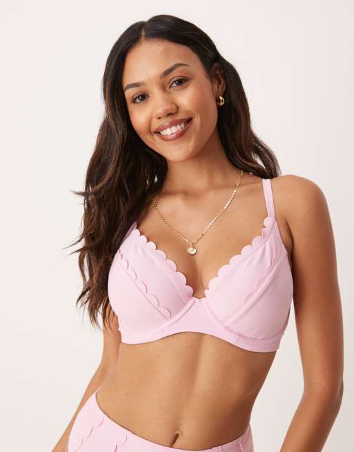 Top de bikini rosa pastel con aros y detalles festoneados dobles de Peek & Beau