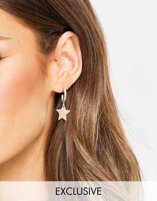 Pendientes de aro pequeños plateados artesanales con estrella de People Tree