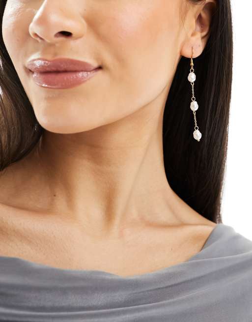 Pendientes largos dorados de acero inoxidable con perlas Emma de Petit Moments