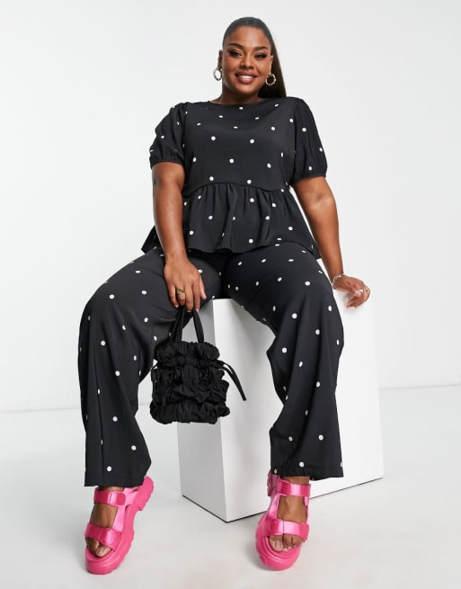 Conjunto negro de top y pantalones de pernera ancha con estampado de lunares de Pieces Curve