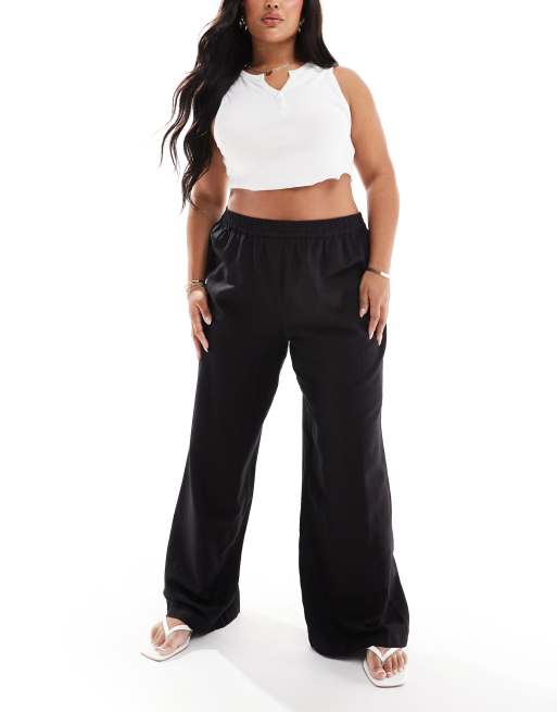 Pantalones negros de pernera ancha de tacto efecto lino de PIECES Curve