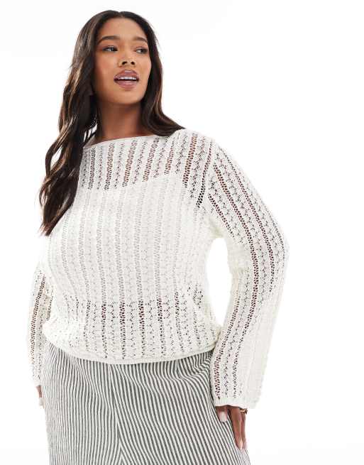 Top corto blanco nube a rayas de croché de Pieces Curve