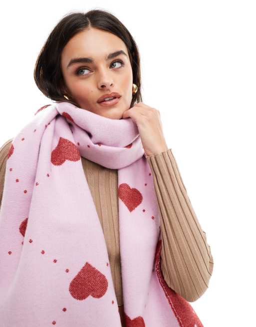 Bufanda rosa con estampado de corazones rojos de tejido suave de PIECES