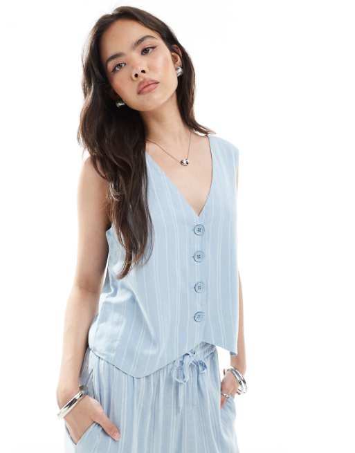 Chaleco de sastre azul claro a rayas de Pieces (parte de un conjunto)