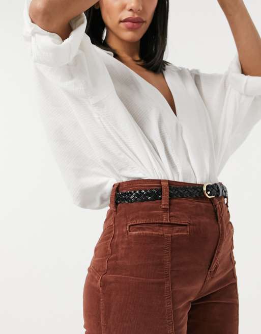 Cinturón negro con diseño entretejido de cuero con hebilla dorada de Pieces