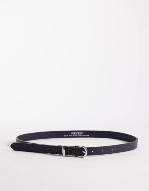 Cinturón negro y plateado estrecho de cuero sintético de Pieces