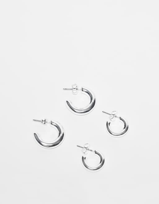 Pack de 2 pares de pendientes de aro básicos chapados en plata de ley de PIECES